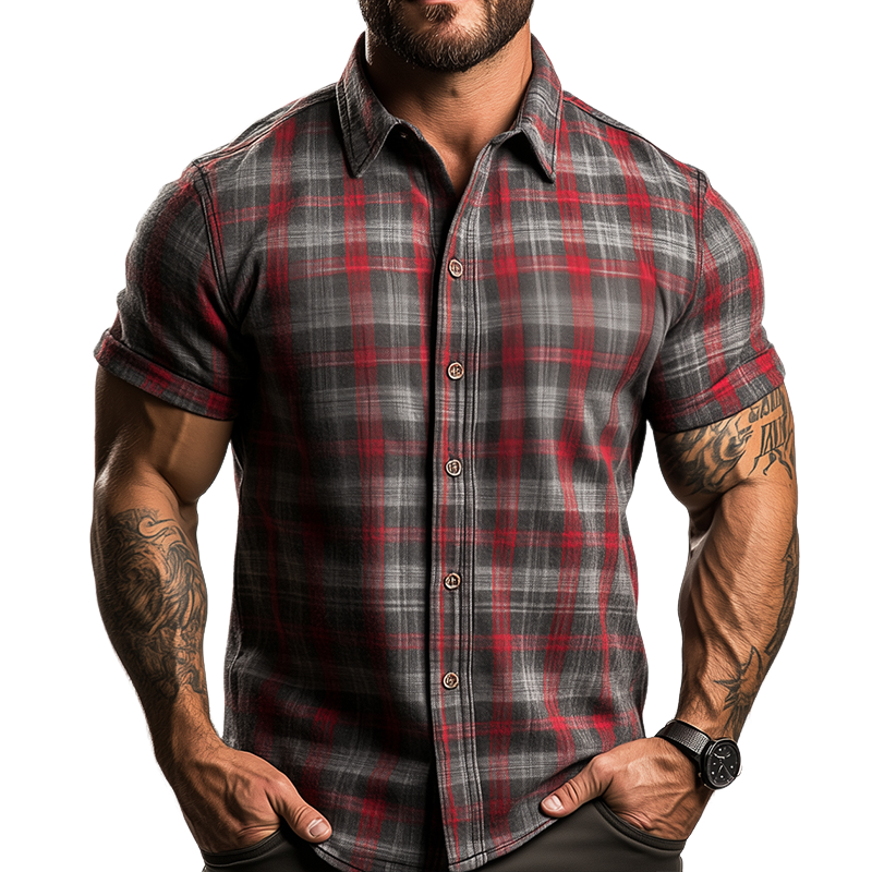Koszula męska w kratkę z krótkim rękawem i kołnierzykiem - styl retro MTA1782C7TO | Wysyłka w 24 godziny