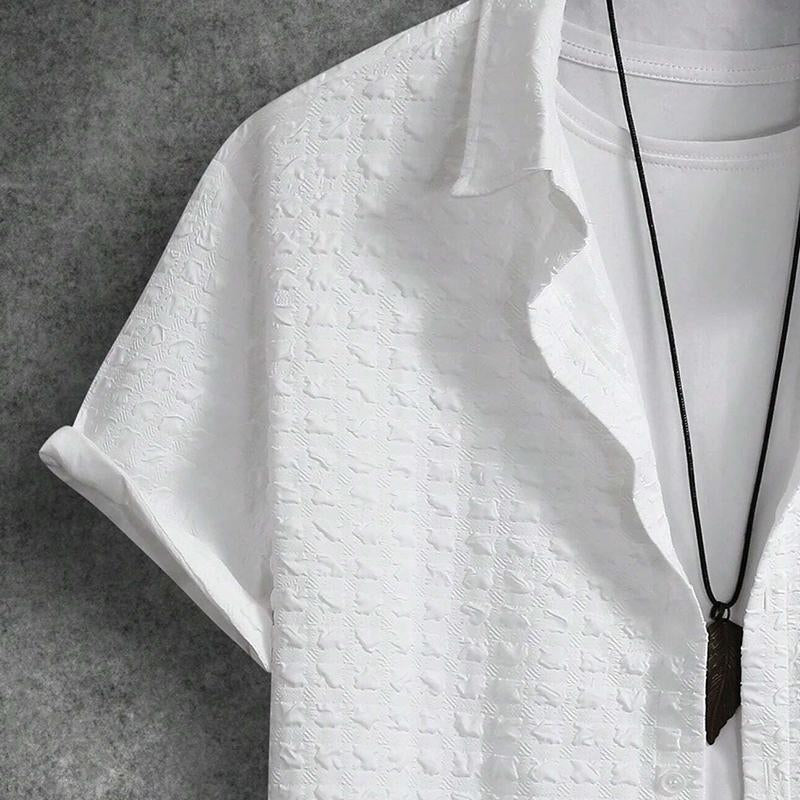 Męska koszula z krótkim rękawem w kwiatowy wzór żakardowy MTA0556F8X
