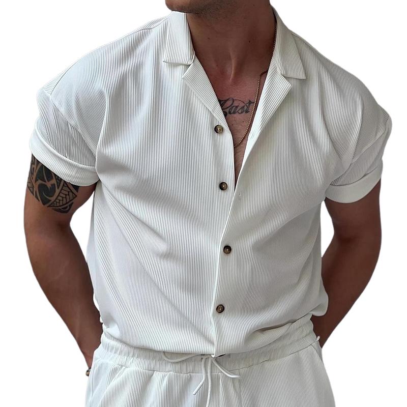 Męska satynowa koszula z plisowanym kołnierzykiem i krótkim rękawem - Model MTA0317G0Z