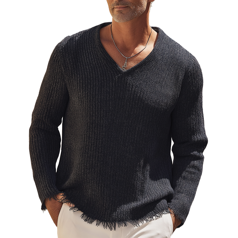 Męski Casual Oddychający Miękki Sweter z Dekoltem w Serek Slim Fit MTA1424H2M