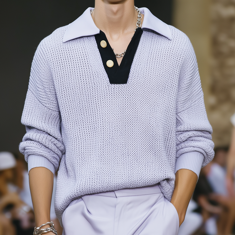 Męski Sweter Casual z Długim Rękawem w Kontrastowych Kolorach z Kołnierzykiem Polo MTA2716H0M