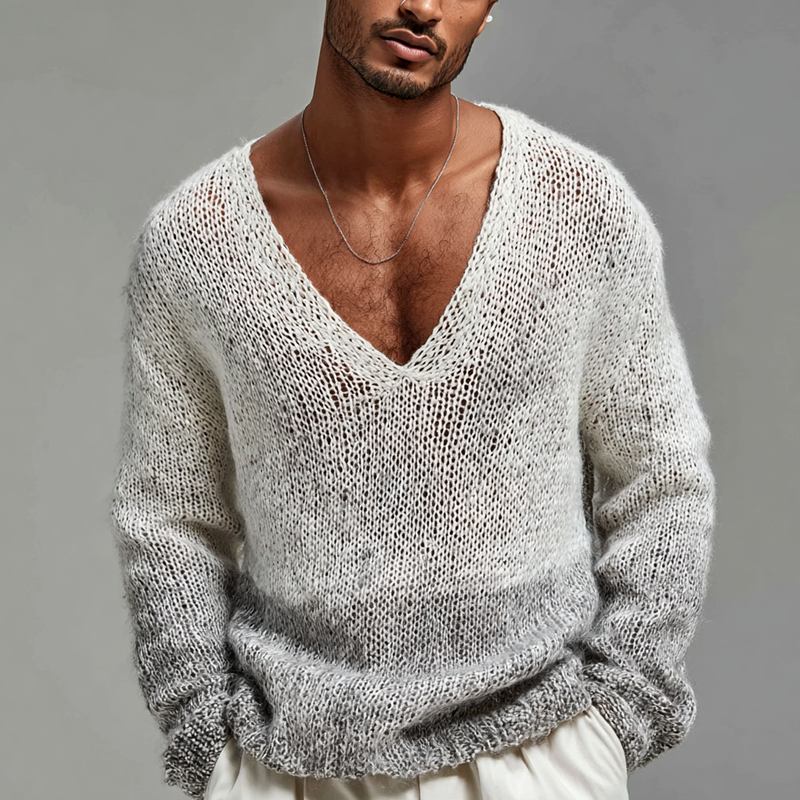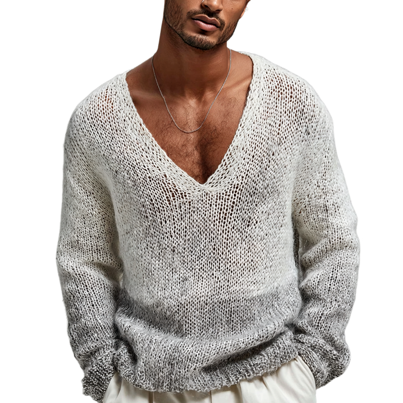 Męski gradientowy sweter z dekoltem V i długim rękawem MTA2096H9Z