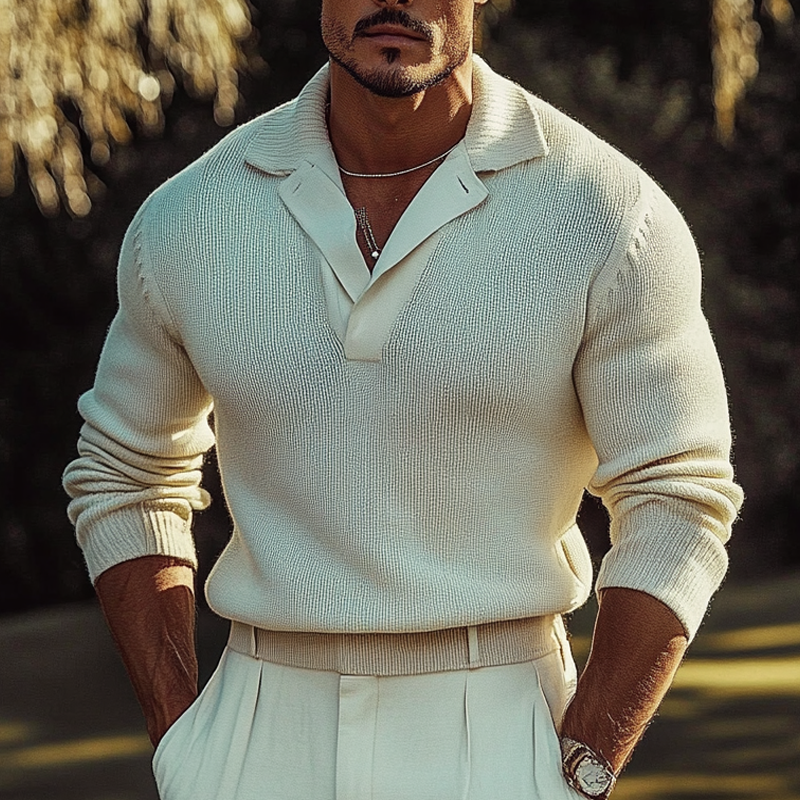 Męski sweter z żakardowej dzianiny z kołnierzykiem 15858753Y